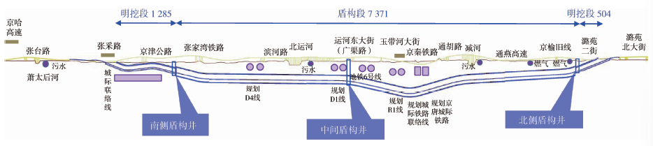 超长盾构隧道的通风设计是城市地下交通工程的关键技术难题,直接关乎工程运营安全、生态环保与城市景观融合。该研究立足北京市城市副中心工程实际,综合考量需风量、环评标准、工程造价、景观协调性等多重因素,完成多套通风方案的系统比选,最终确定“全纵向通风+重点排烟+空气净化(明挖段纵向排烟)”的组合方案。该研究通过模拟验证了所提方案在断面风速、污染物控制等方面的技术可行性,隧道纵向通风区段长度可达9 160 m。该方案兼顾了工程效益与生态社会效益,解决了通风设施与城市核心区景观的协调难题,践行了绿色工程设计理念,为同类工程提供了可落地的技术范式。