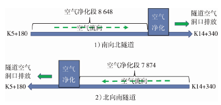 2)对于环境、景观要求较高的地区,可考虑采用空气净化设施。空气净化站的设置,可使隧道外污染物排放质量浓度满足环评要求,改善空气净化段出口处隧道内环境,且能起到以新带老、节能减排的作用。